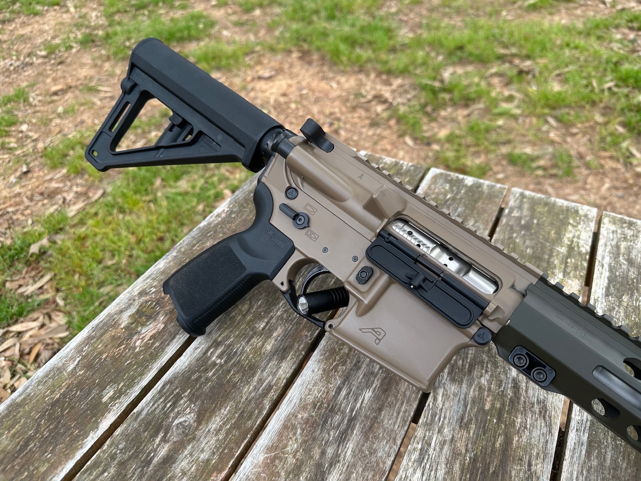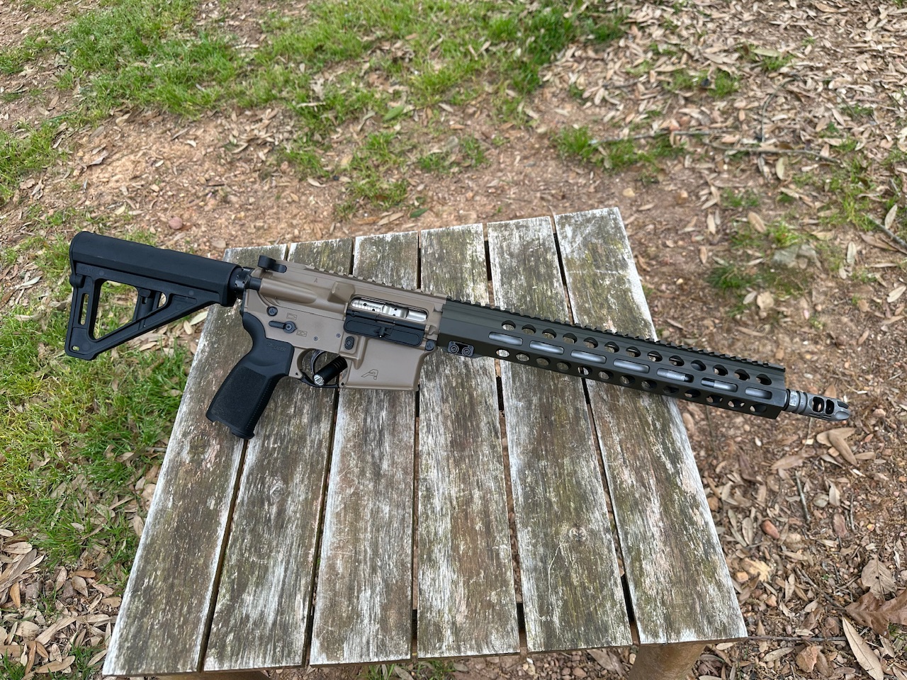 Aero Precision, X15, ARP, Pistol, Semi Automatic, 223/5.56 Matte SS Barrel, NIBX BCG, VG6 Comp (Not Pinned), Foward Control Designs RHF 12.8” MLOK Hand Guard, Geissle Trigger,  Magpul BTR Brace, AMBI Safety, Sig Grip, FDE/OD Finish, 1 30Rnd Magazine, Used, Excellent Condition, Light Wear on Receiver.