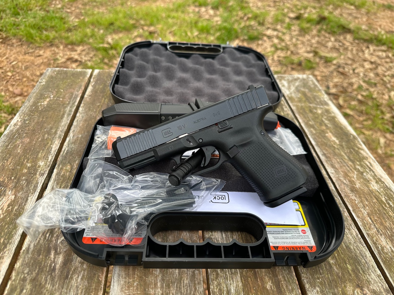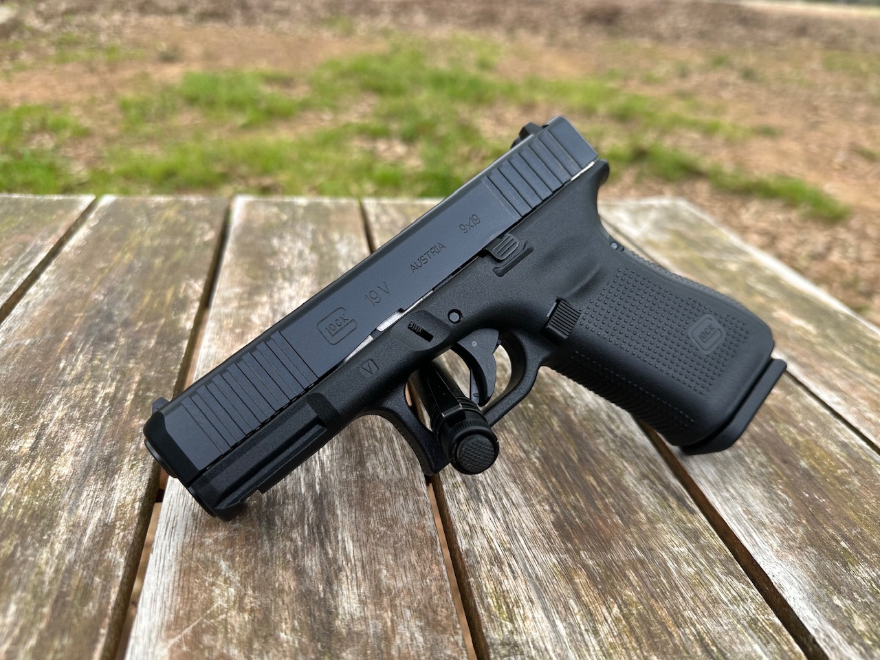 GLOCK, 19V, V Series, Striker Fired, Semi-automatic, Polymer Frame Pistol, Full Size, 9MM, 4.02″ Marksman Barrel, nDLC Finish, Fixed Sights, Ambidextrous Slide Stop Lever, Flared Mag Well, No Finger Grooves, Front Serrations, 15 Rounds, 3 Magazines, Brand New.