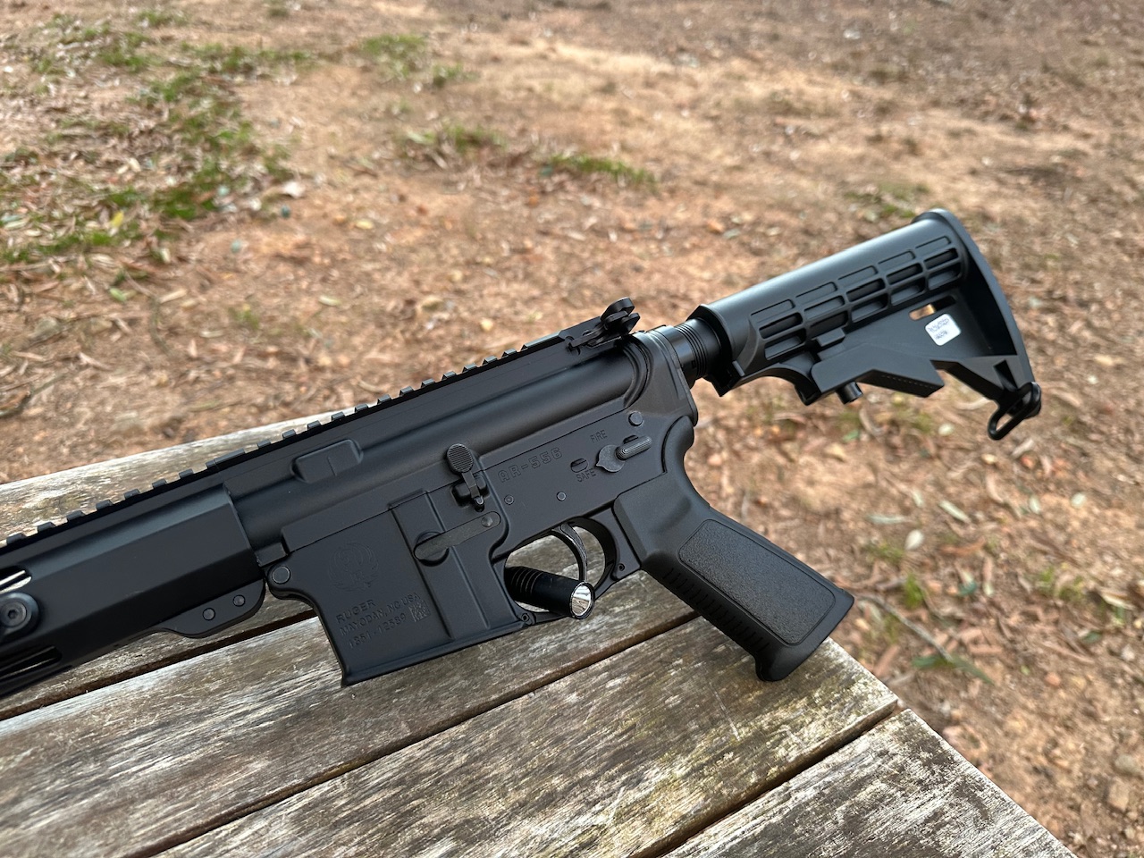 Ruger, AR556, AR15 Platform, Rifle, Semi Automatic, Manual Safety, 16″ Barrel, .223/5.56 NATO, 12″ Free Float Handguard, 6 Position Adjustable Stock, Polymer Furniture, Black Finish, 1 30Rnd Magazine, Used, Excellent Condition.