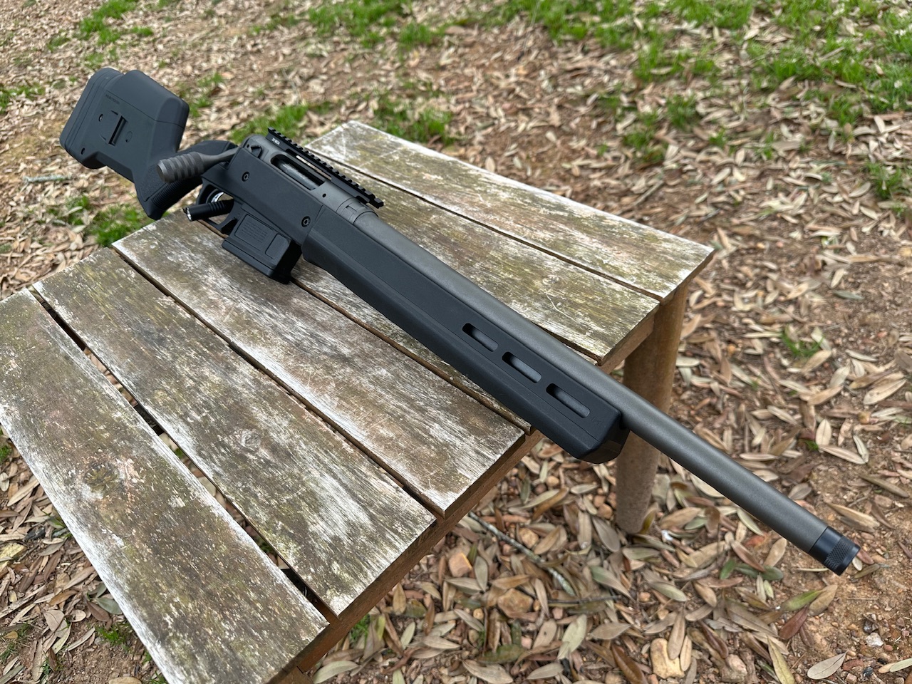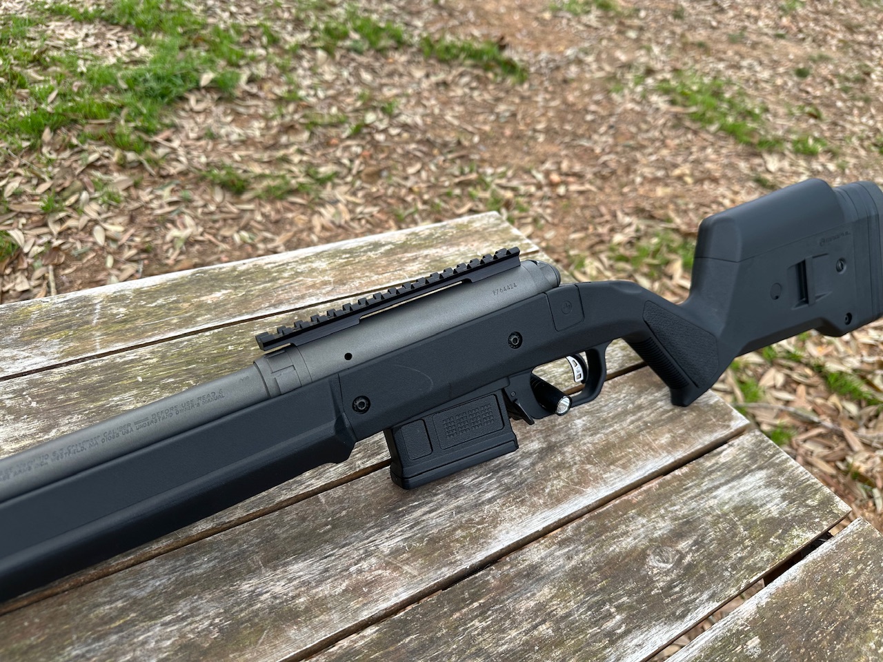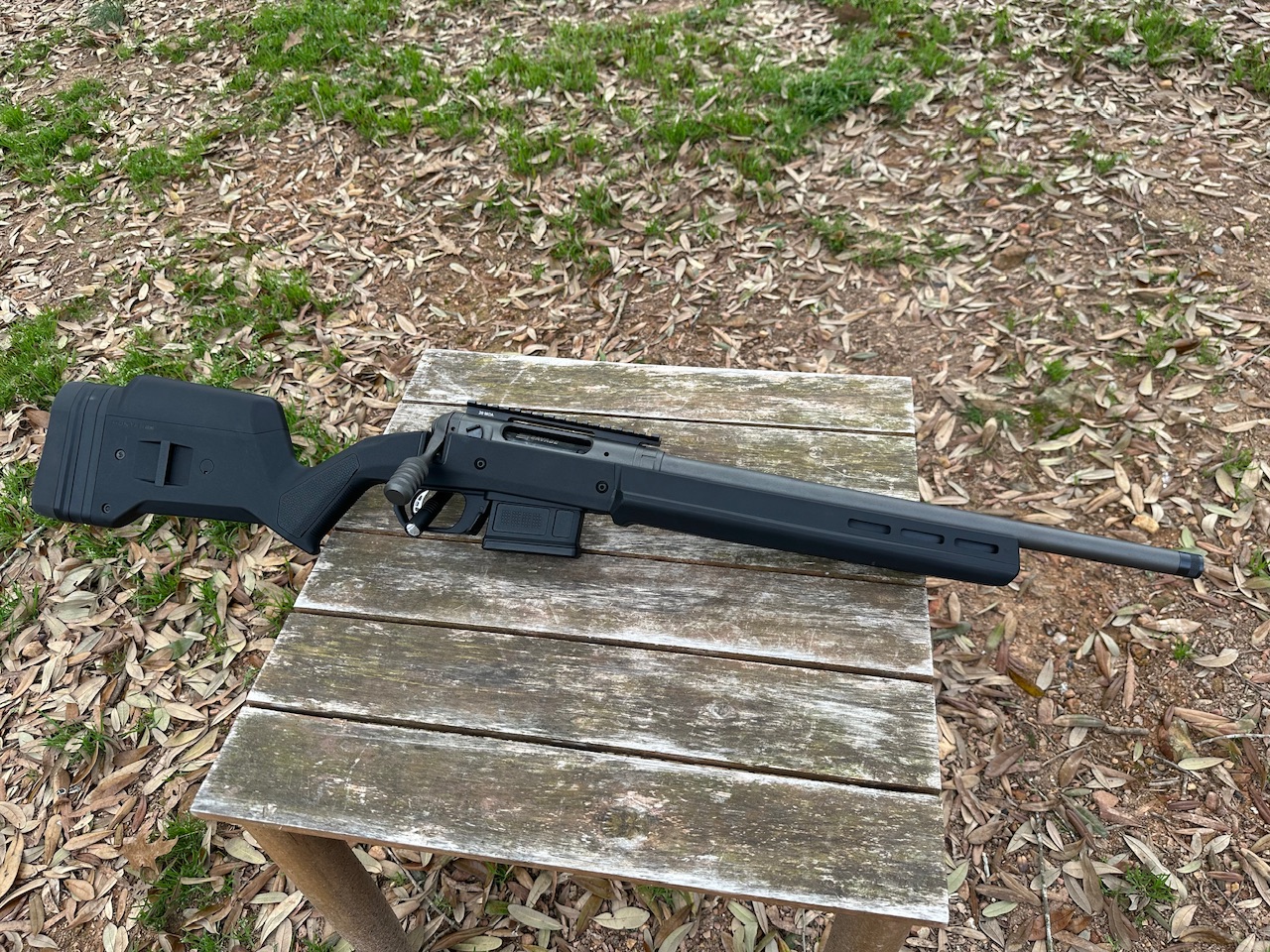 Savage 110 Magpul Hunter, Rifle, Bolt Action, 6.5CM, 18” Medium Contour Barrel, Tungsten Finish, Threaded, Magpul Stock, 1 Piece Picatinny Rail, 1 Detachable Magazine, Used, Excellent Condition.