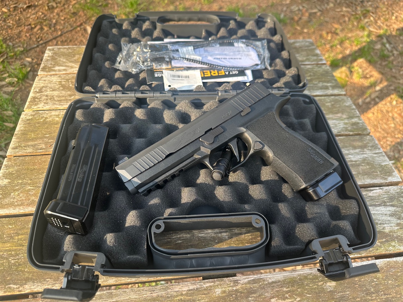 Sig Sauer, P320 XTEN, Striker Fired, Semi-automatic, Polymer Frame Pistol, Full Size, 10MM, 5″ Barrel, Nitron Finish, Black, Optics Ready, Trijicon RMR Footprint, XRAY3 Night Sights, 15 Rounds, 2 Magazines, Used, Excellent Condition, Original Box & Belongings.