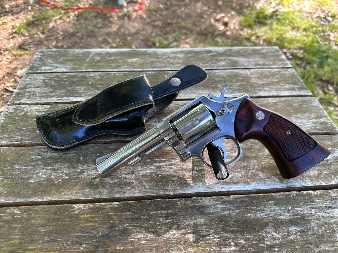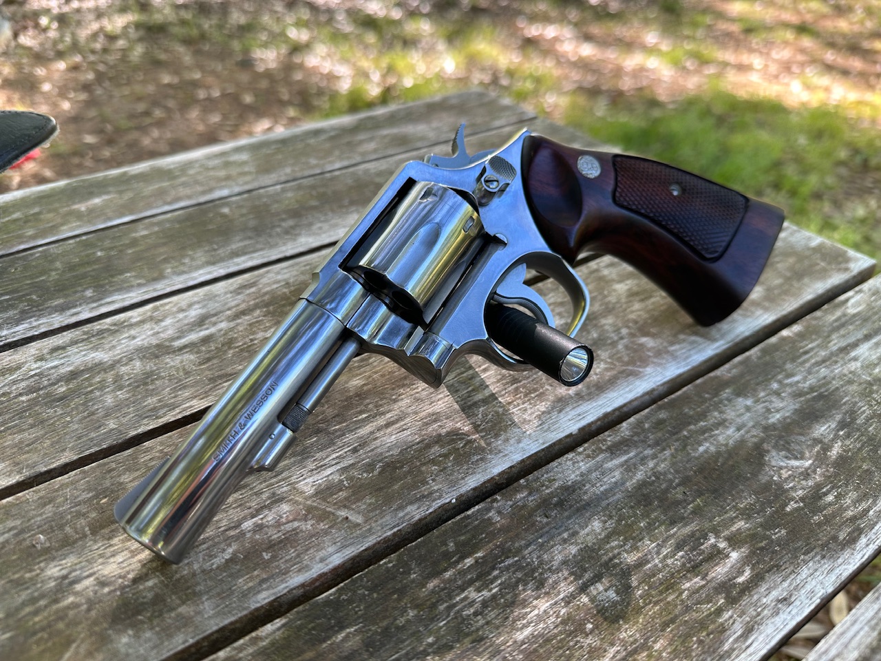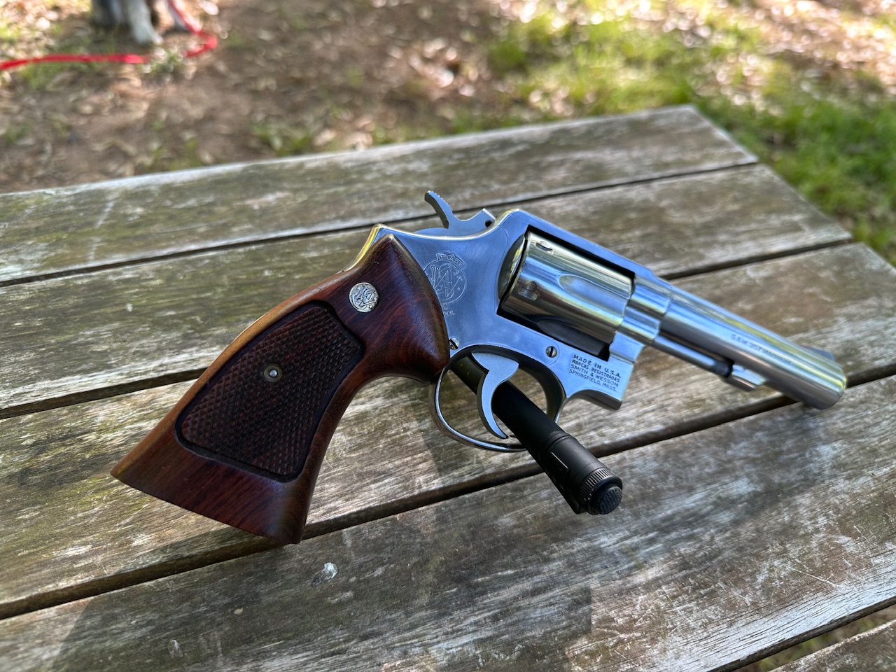 Smith & Wesson, 65-2, Revolver, SA/DA, 357 MAG, 4” Barrel, SS Finish, Original Wood Grips, Used, Excellent Condition, Holster Included.